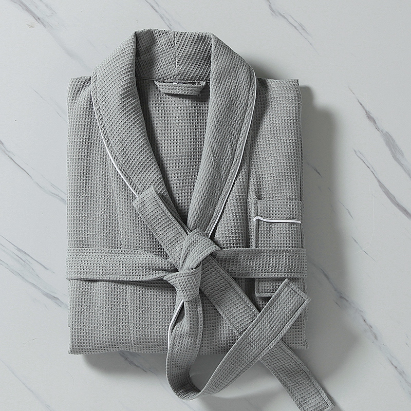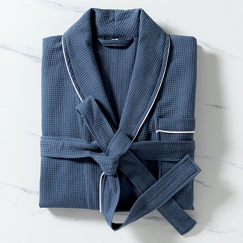 Página inicial / Produtos / Roupão de hotel / Colar de xale waffle pequeno 100% algodão com roupão de banho